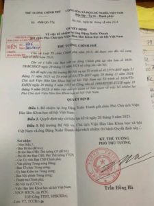 QUYẾT ĐỊNH BỔ NHIỆM DẬY SÓNG VIỆN HÀN LÂM KHOA HỌC XÃ HỘI VIỆT NAM