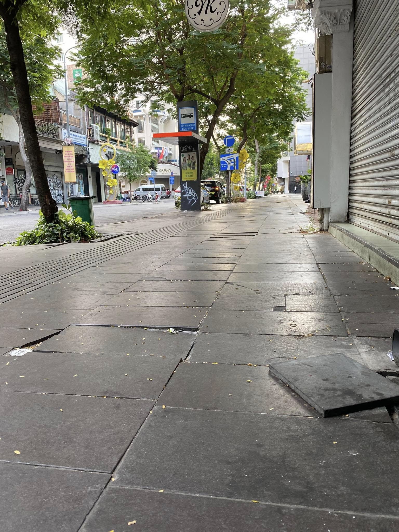 Hôm qua là ngày khởi công cầu đi bộ, tôi đi metro xuống ga Nhà hát Thành phố rồi đi dọc đường Đồng Khởi. Lạ, bao nhiêu con đường vẫn còn lành lặn hơn con đường “dát vàng” này thì bị xới lên lót mới; trong khi hiện trạng gạch bể, gạch bị chênh khiến người đi bộ trên vỉa hè Đồng Khởi rất dễ bị vấp, té, trật chân… thì lại để yên như thế nhiều năm qua. Tôi nhớ mình đã phản ảnh hai lần về việc này từ hơn 2-3 năm nay nhưng khi vỉa hè Quận 1 như một công trường thì riêng ở Đồng Khởi, thay hoặc xử lý những mảng, chỗ bị hư hỏng là việc cần làm ngay tức khắc vẫn không thấy.