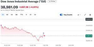 Cập nhật từ Tiếng Dân: Sau khi Trump kêu gọi mọi người mua cổ phiếu, sáng nay thị trường lao dốc. Chỉ số Dow Jone có lúc mất 2100 điểm, chỉ còn hơn 38.400 điểm. Hiện tại mất hơn 1600 điểm: