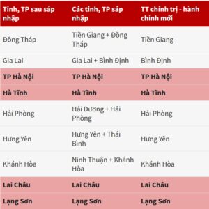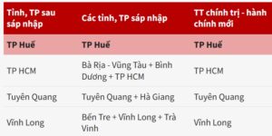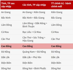 Ví dụ, Gia Lai và Bình Định sáp nhập đổi tên thành Gia Lai; An Giang và Kiên Giang sáp nhập đổi tên thành An Giang; Bến Tre, Vĩnh Long, Trà Vinh sau sáp nhập có tên là Vĩnh Long.