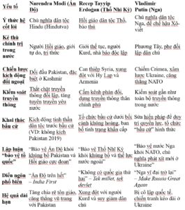 BẢNG SO SÁNH CHIẾN LƯỢC CHÍNH TRỊ CỦA MODI – ERDOĞAN – PUTIN