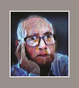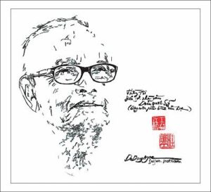 Năm 2013, tôi có dự án vẽ chân dung những văn nghệ sĩ Việt Nam và thế giới. Một trong những nhà văn Việt Nam tôi vẽ đầu tiên là Nhà văn Doãn Quốc Sỹ, người Thầy của tôi. Bức chân dung đó lại được một người bạn học của tôi là chị Phương Lan, giáo viên Văn trường Marie Curie, đang định cư ở California là bạn với con gái Thầy, mang gởi cho Thầy xem. Nghe nói Thầy rất ưng ý, tôi cũng vui trong bụng. Chị Phương Lan cũng gởi cho tôi tấm hình Thầy ngồi bên bức chân dung đó, thấy Thầy vẫn mạnh khoẻ, quắc thước, những người học trò cũ của Thầy rất mừng.