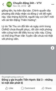 Năm 2018, Facebook Chuyển động 24h (VTV) từng dẫn lại loạt bài điều tra của tờ Thương Trường về Công ty Đông y gia truyền Tiến Hạnh, do Đặng Thiên Hương – tên thật Đặng Nữ Tài Thu – làm giám đốc, (Ảnh minh họa 1,2), trong đó nêu rõ: