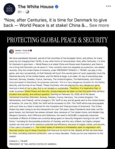 Chúng ta đã trợ cấp cho Đan Mạch và tất cả các nước thuộc Liên minh Châu Âu, cũng như các nước khác, trong nhiều năm bằng cách không đánh thuế quan hay bất kỳ loại phí nào khác. Giờ đây, sau nhiều thế kỷ, đã đến lúc Đan Mạch phải đáp lại – Hòa bình thế giới đang bị đe dọa! Trung Quốc và Nga muốn Greenland, và Đan Mạch không thể làm gì được. Hiện tại họ chỉ có hai xe kéo chó để bảo vệ, một chiếc được bổ sung gần đây. Chỉ có Hoa Kỳ, dưới thời Tổng thống Donald J. Trump, mới có thể tham gia vào trò chơi này, và rất thành công!