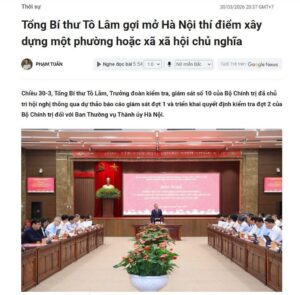 Chiều 30 tháng 3 năm 2026, tại hội nghị thông qua dự thảo báo cáo giám sát của Đoàn kiểm tra số 10 Bộ Chính trị đối với Ban Thường vụ Thành ủy Hà Nội, Tổng Bí thư Tô Lâm đã có một gợi mở đáng chú ý: Hà Nội nên nghiên cứu thí điểm xây dựng một phường hoặc một xã – xã hội chủ nghĩa.