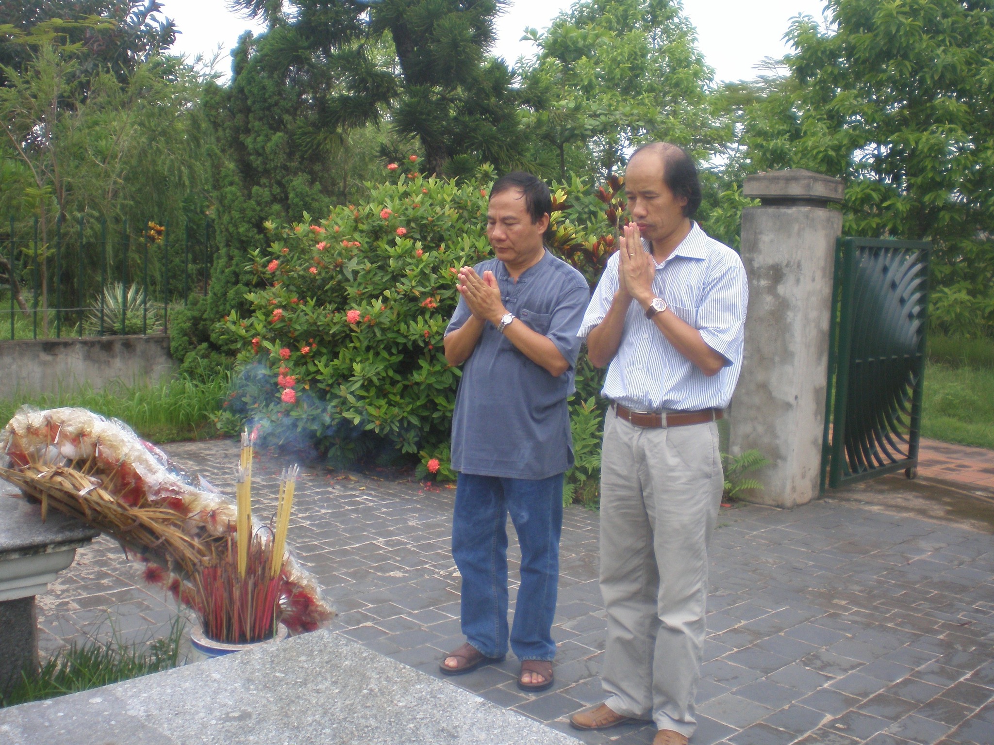 Tác giả cùng nhà văn Trần Đức Tiến (trái) viếng mộ nhà văn Nam Cao tại khu tưởng niệm. Nguồn: Tạ Duy Anh